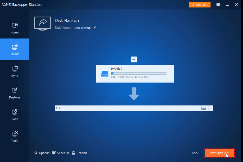 AOMEI Backupper provides different backup methods so you can use it to perform a full backup, incremental backup for free, or differential backup for the paid accounts according to your needs.