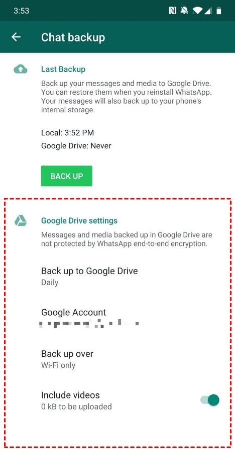 Then, you can manually back up WhatsApp to Google Drive from your Android phone or simply set up automatic backup on WhatsApp.