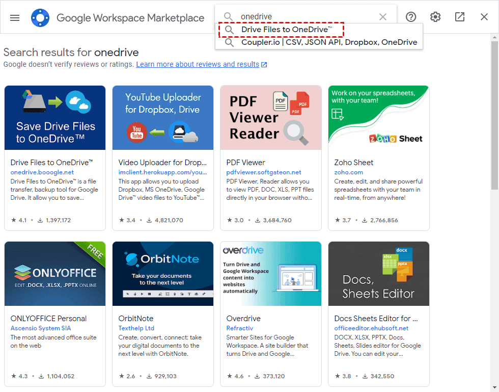 2. It will pop up a window, just search OneDrive in the box, and select Drive Files to OneDrive.