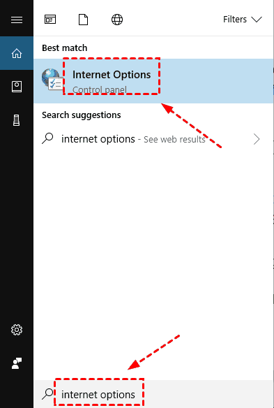 Step 1. Hold down the "Windows+S" key, enter Internet options in the search box, and then click Internet Options.