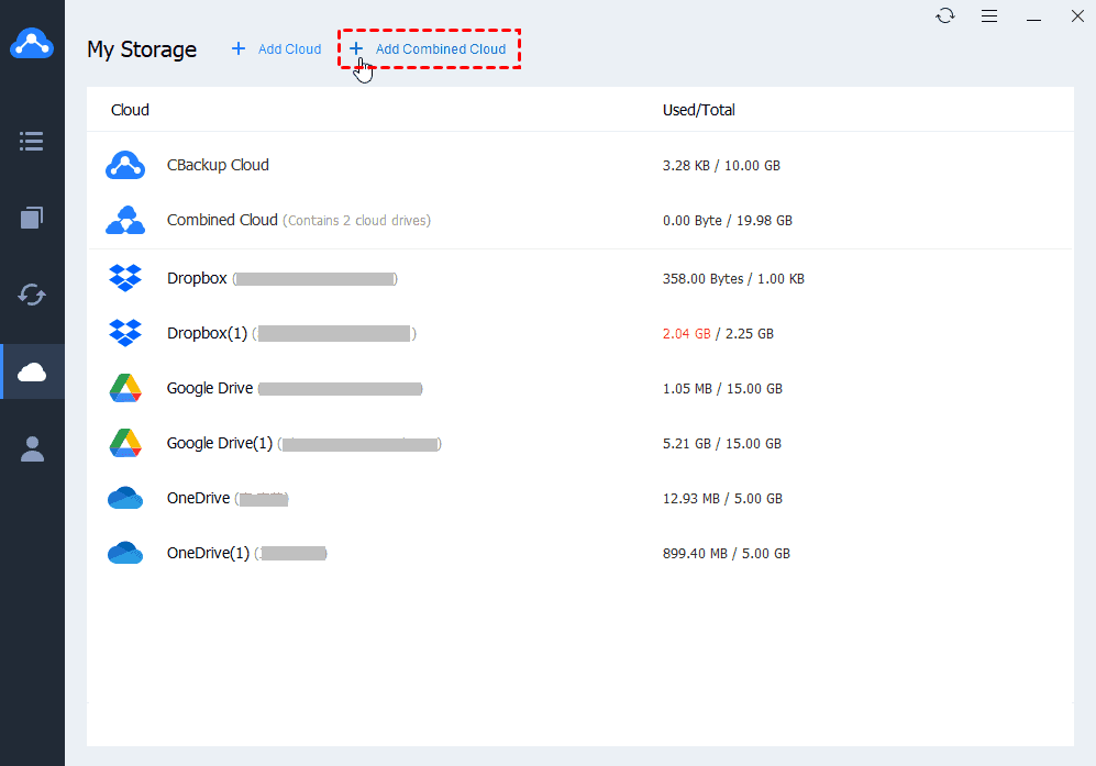 ✎Note: You can add as many cloud storage accounts as possible, and CBackup will help you combine the free space of these accounts to form a large backup space so that you can back up more data to the cloud for free.