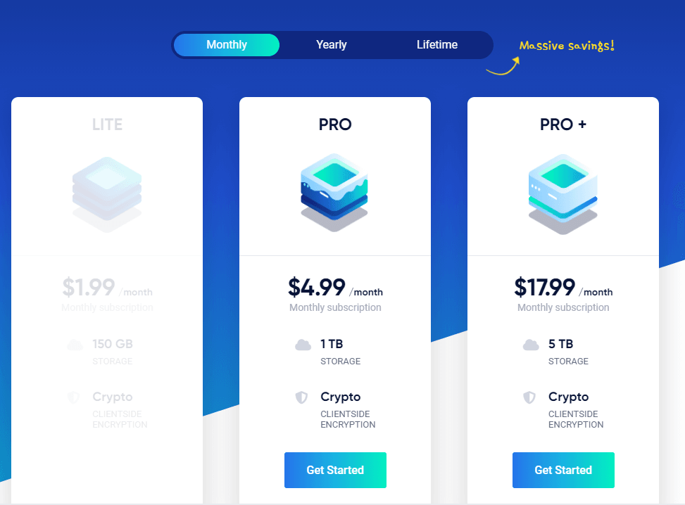 Cost: You can also pay $4.99 per month for 1TB (PRO) or $17.99 per month for 5TB (PRO+). It even offers lifetime 10TB cloud storage plans for $999 for those who don't like to pay monthly or per year.
