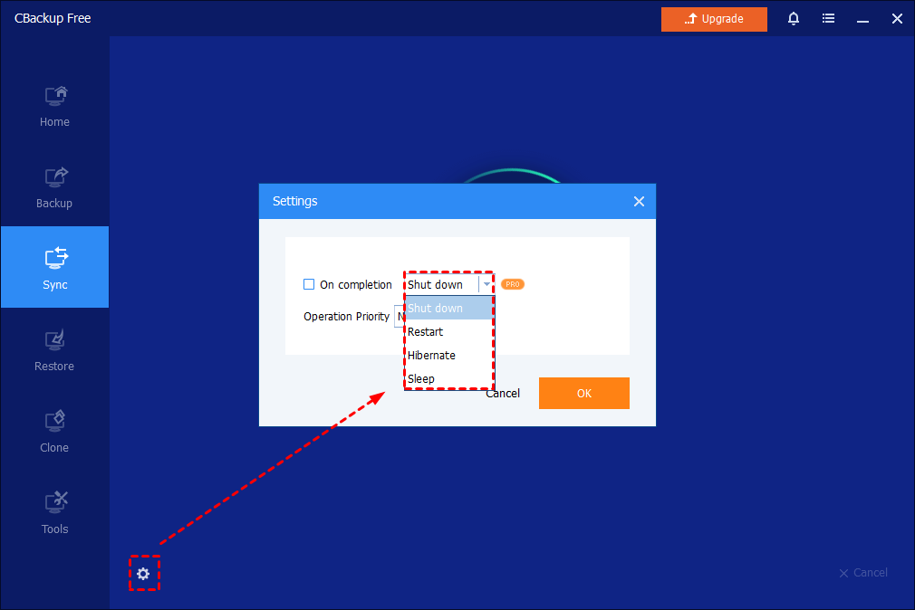 Tips: While sync is running, you can click an icon in the lower-left corner to set to Shut down/Restart/Hibernate/Sleep PC after sync completion.