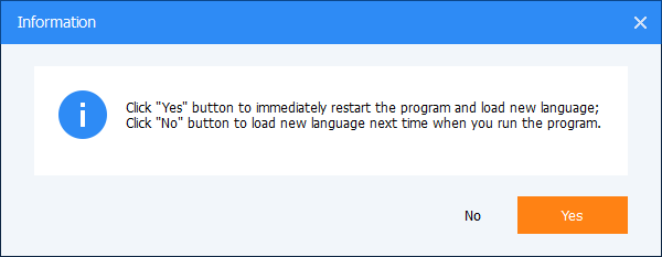 After "Step 2", an "Information" window will pop up and let you choose when you want to load a new language.