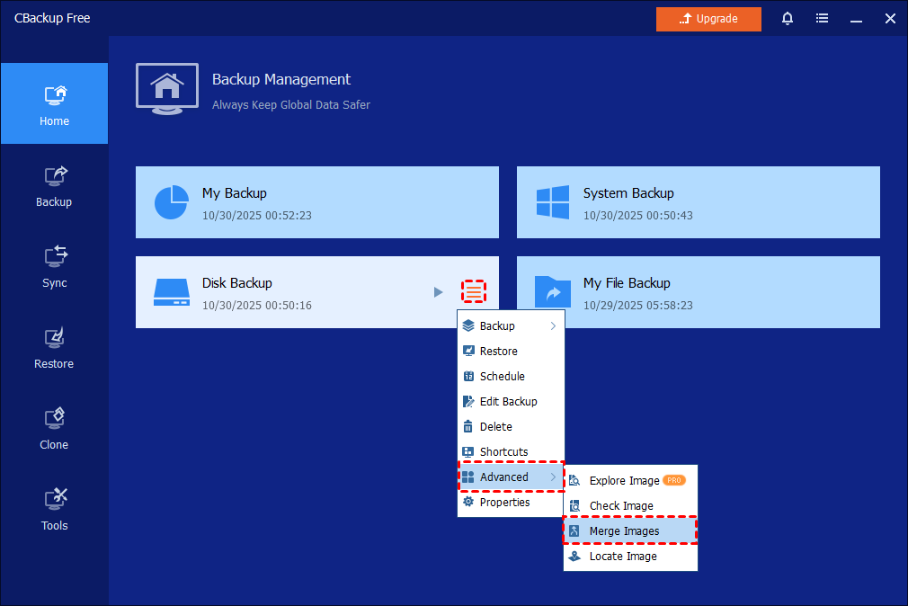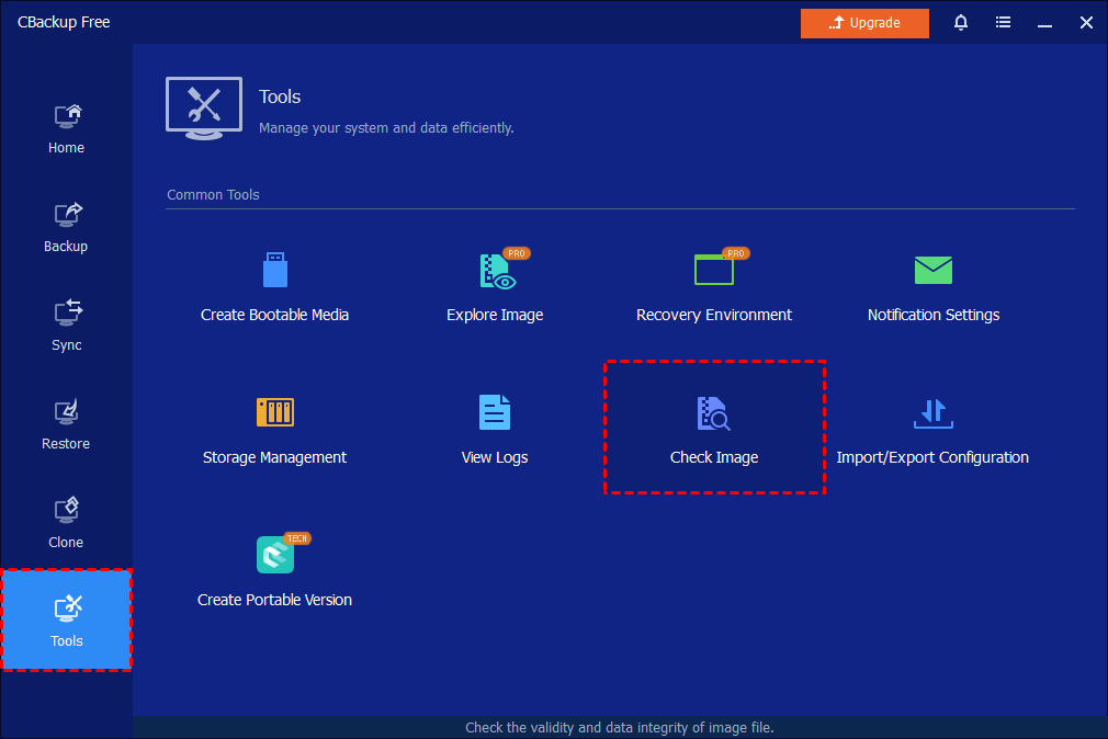 You can either open CBackup and select Advanced on the main tab, then select Check Image.
