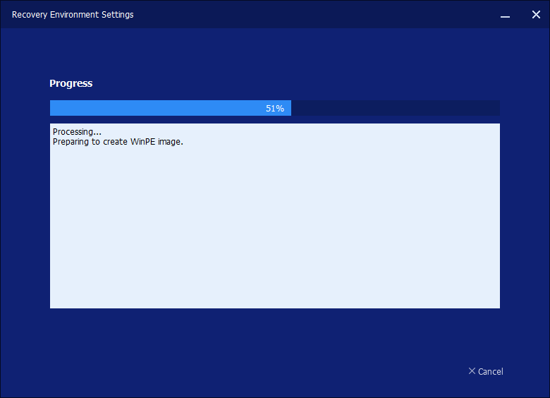 It will enter the page for creating the recovery environment. In this page, you can check the progress of creating the recovery environment and specific process information. You can click "Cancel" in the lower right corner to stop the process of creating a recovery environment.