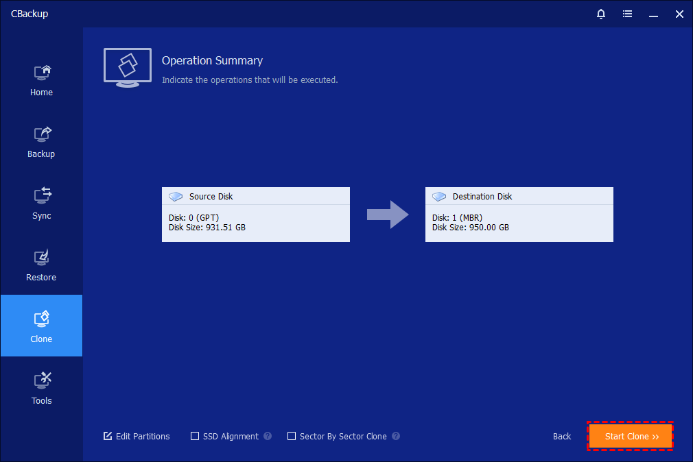Note: For the system disk, Disk Clone is a paid feature, you need to upgrade to CBackup Professional or Technician version.