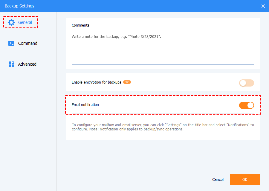 1. Enable email notification during creating a backup task
