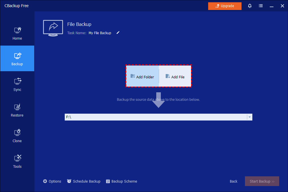 2. Click Add File or Add Folder to select the files/folders you want to backup.