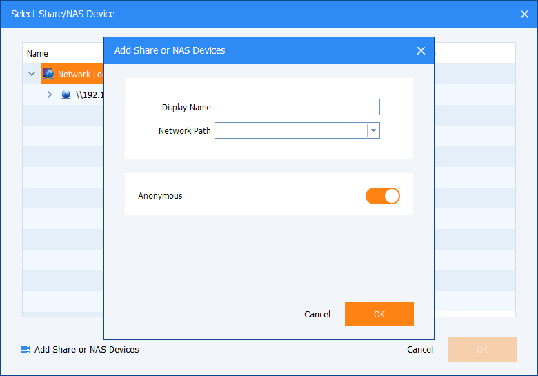 Add Share or NAS Devices