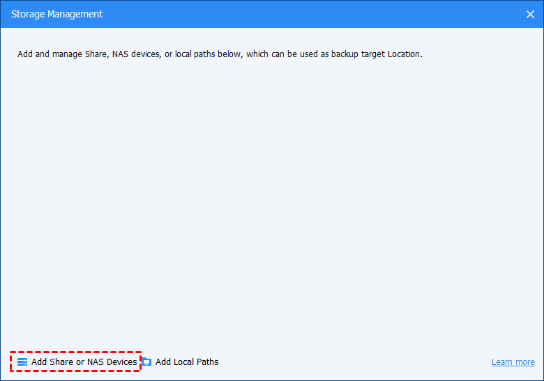 Through the tool "Storage Management", you can add NAS to the storage list in advance. You can view, edit, or manage the NAS, and you can also directly select the NAS as the destination path when creating a task.