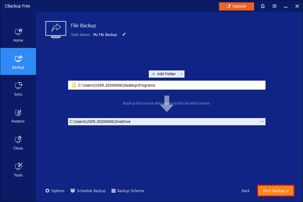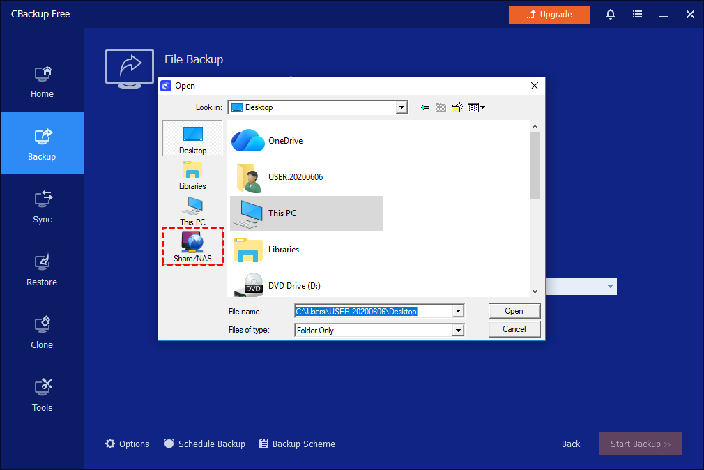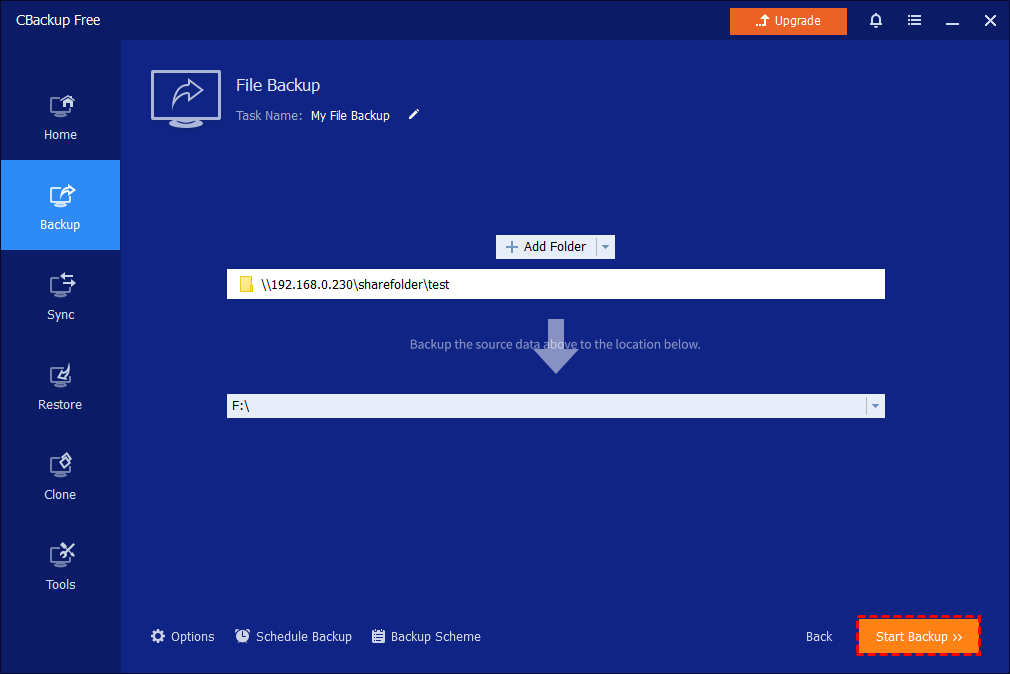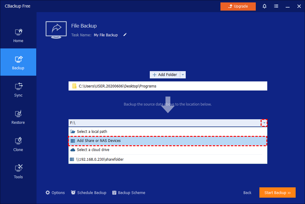 CBackup, the best free backup software for Windows 11/10/8.1/8/7/Vista/XP, can help you with NAS backup. It offers you 4 main backup types: System/Disk/Partition/File Backup. You are allowed to back up to local disks, external hard drives, USB flash drives, and network locations. If you want to back up to cloud, the File Backup and Sync features are applicable. Follow the guidance below to back up files to NAS or cloud clients. You can also learn how to back up files from NAS here.