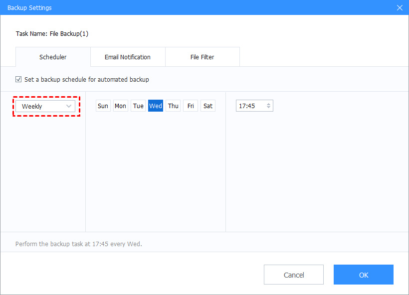 3. Select a backup schedule depending on needs, and you can see there are 4 Scheduled Modes.