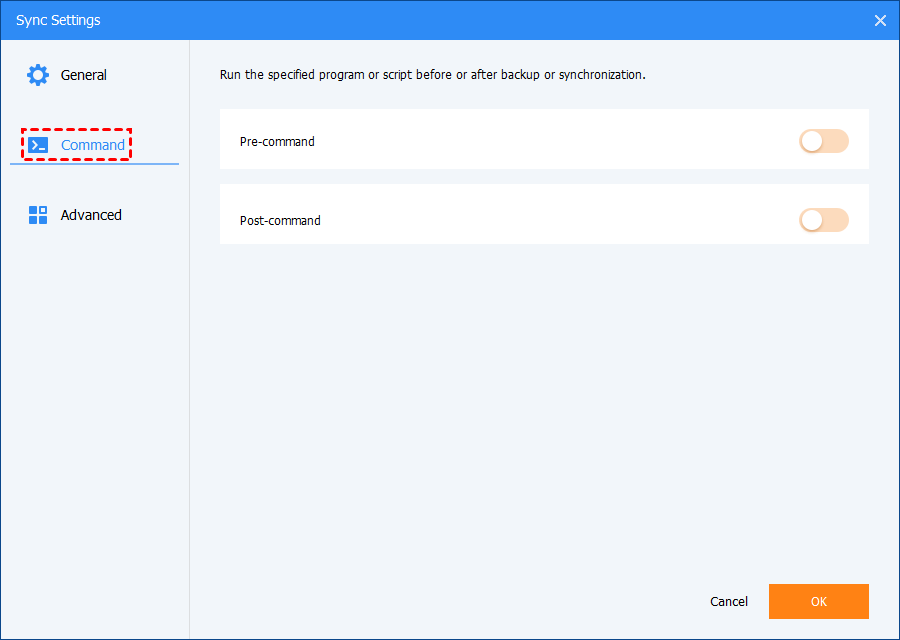 In this option, you can set the pre-command and post-command.