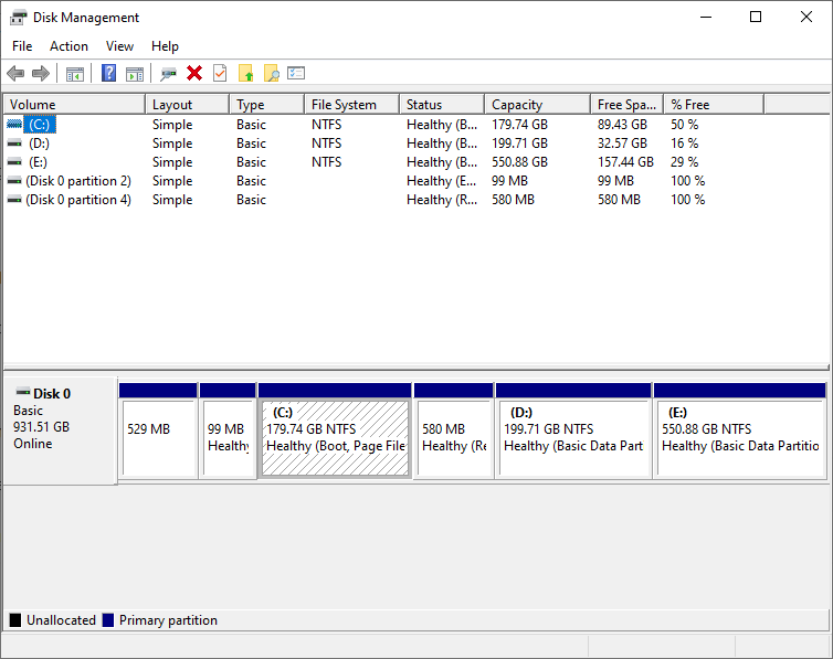 Open the Run dialog box with the shortcut Win + R, and type in "diskmgmt.msc" and press Enter. It will load the Disk Management window.