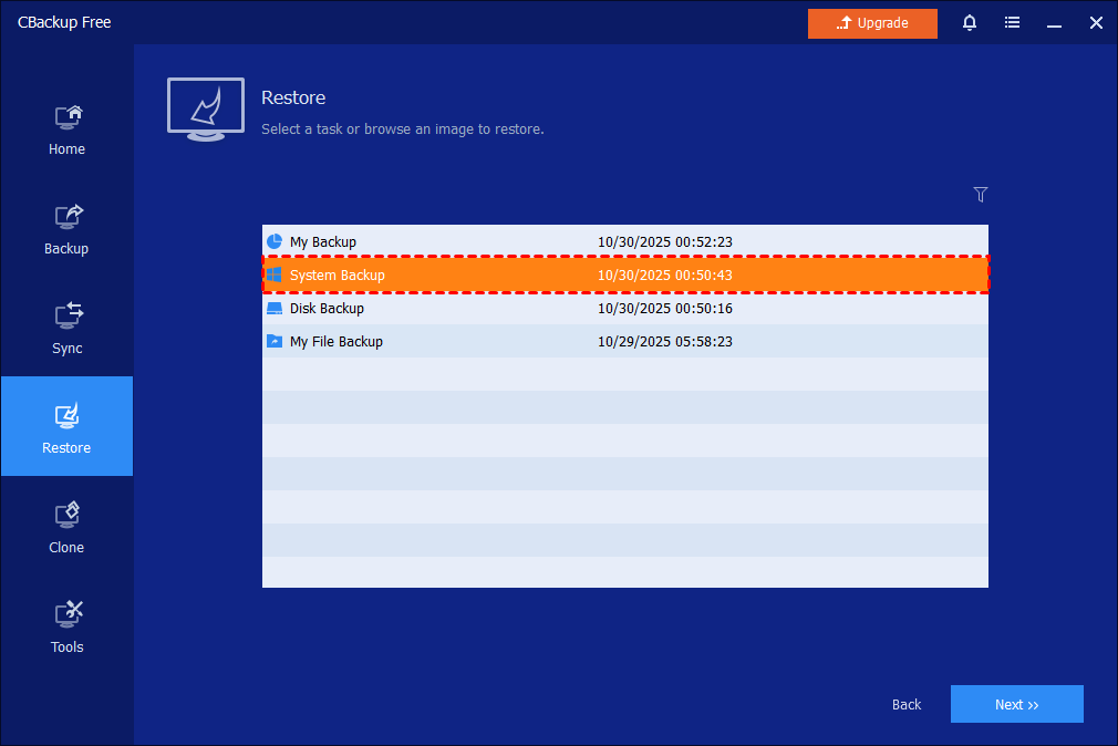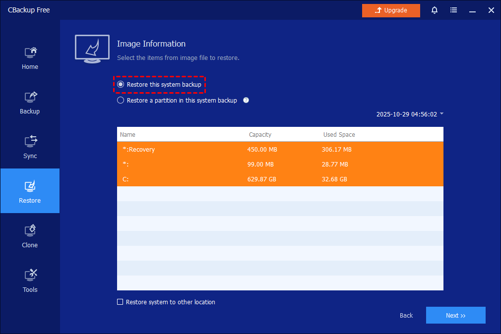 The preparations and steps are very similar. Please click the Upgrade Now button in CBackup Standard to upgrade now and enjoy the Universal Restore feature.