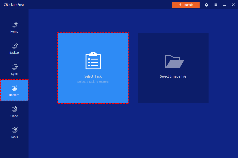 Step 1. Click the "Restore" and "Select Task" to choose a system backup task created before. Or you could directly locate it with the "Select Image File" option. It will be directed to Step 3 if you select the second option.