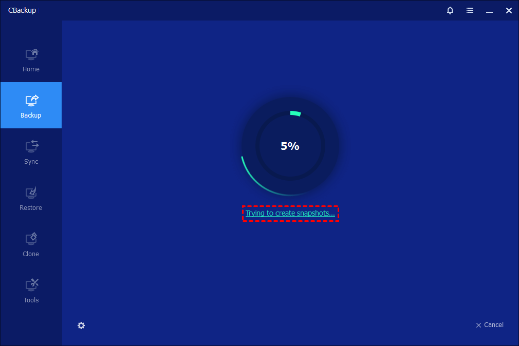 When the backup is running, you can also click the underlined sentence to check the backup process in detail.