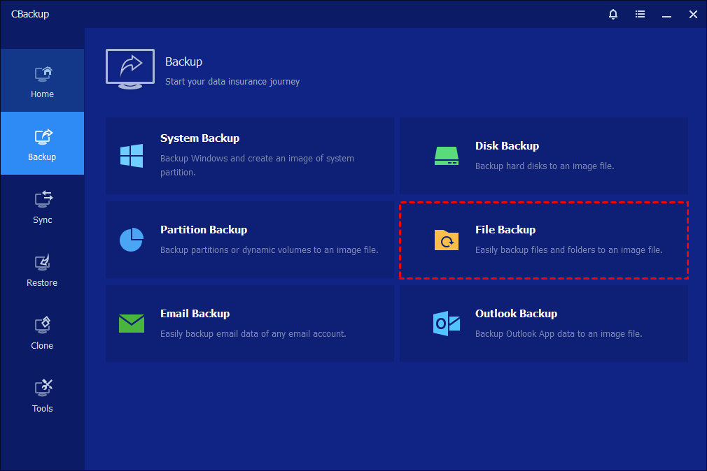 Step 2.Click Backup in the left menu, then select the File Backup option.