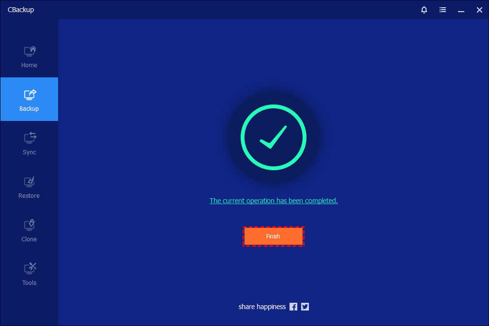 Then, please kindly wait for the backup process to complete, and then click the"Finish" button.