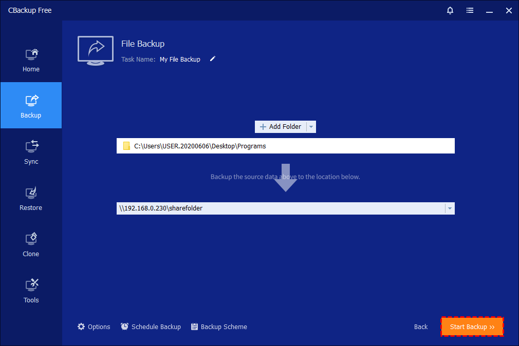 Step 3. Open CBackup and go to Backup > File Backup. Enter a task name, then click Add File or Add Folder to choose what you want to back up.